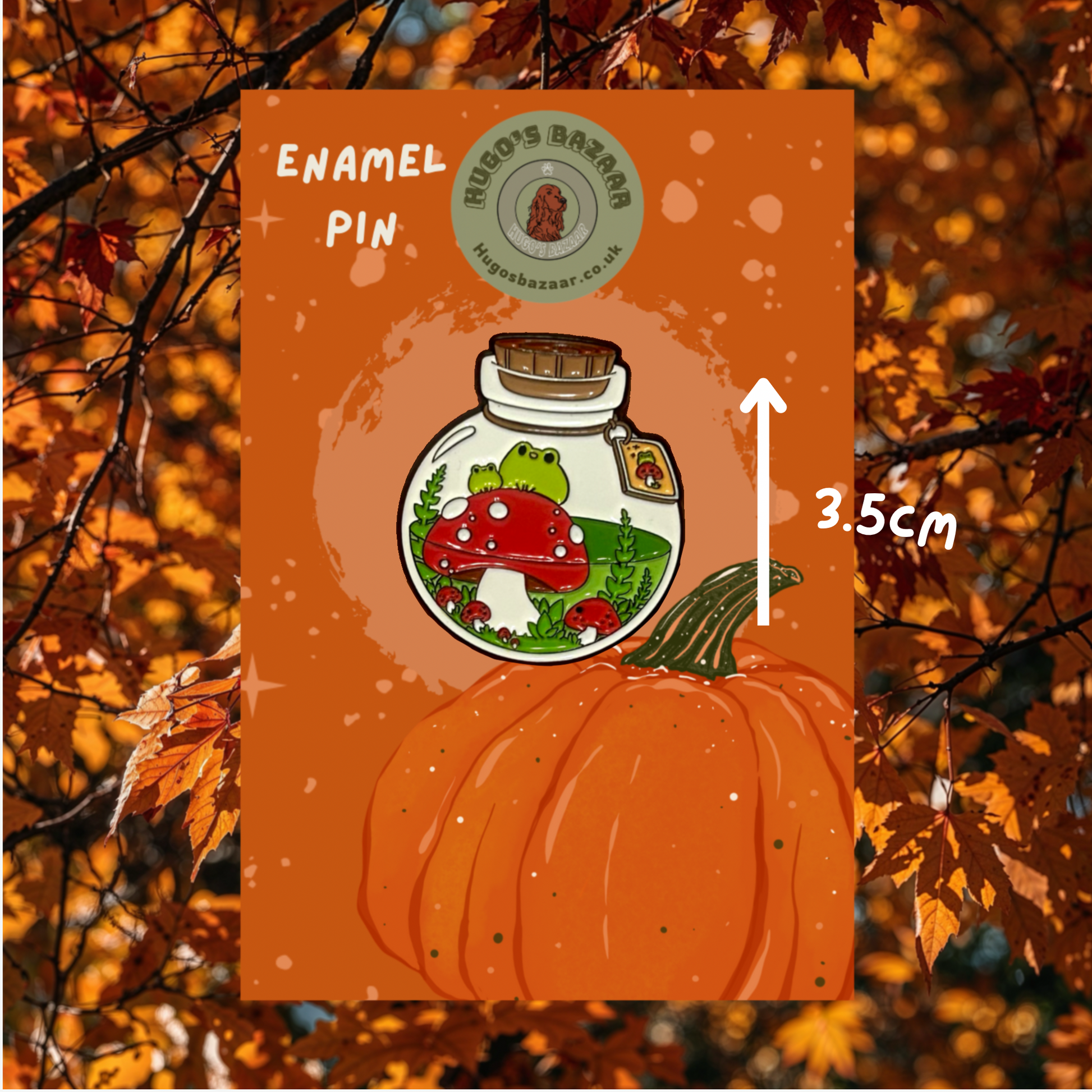 Each pin comes presented on a themed backing card, making it instantly giftable for birthdays, autumn surprises, or just because. Durable and eye-catching, it’s ideal for pinning to jackets, bags, lanyards, or display boards — a little bottle of enchantment to brighten your day.