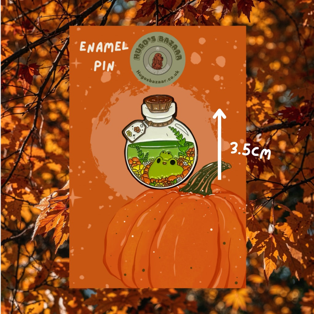 Each pin comes presented on a themed backing card, making it instantly giftable for birthdays, autumn surprises, or just because. Durable and eye-catching, it’s ideal for pinning to jackets, bags, lanyards, or display boards — a little bottle of enchantment to brighten your day.
