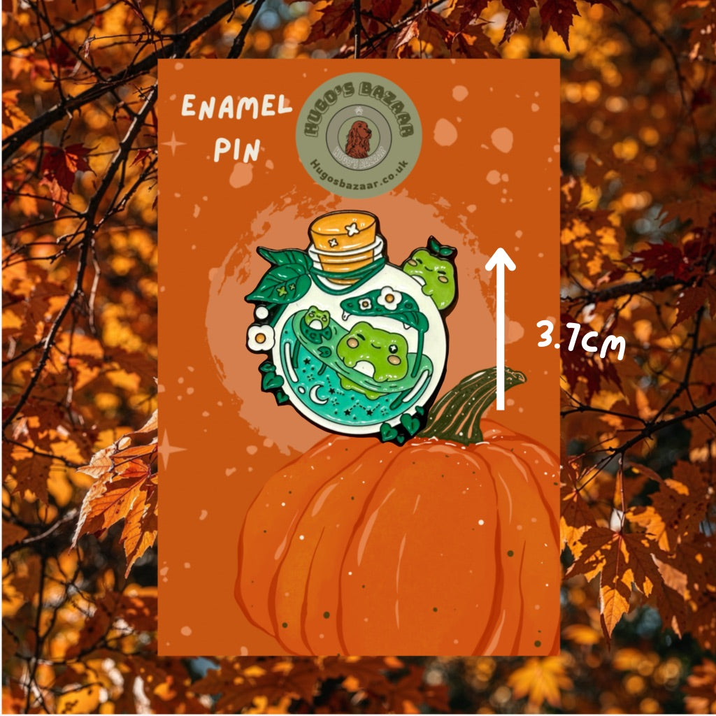 Each pin comes presented on a themed backing card, making it instantly giftable for birthdays, autumn surprises, or just because. Durable and eye-catching, it’s ideal for pinning to jackets, bags, lanyards, or display boards — a little bottle of enchantment to brighten your day.